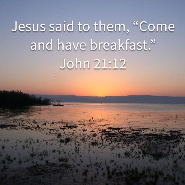 Peter found Jesus waiting for him, with a fish grilling on a charcoal fire at the shore. There were no lectures or warnings. The other disciples joined them from the boat, as Jesus gave only an invitation, “Come and have breakfast.”