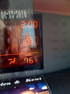 Help is also what I needed today in completing my first tri of the season with fellow blogger Steve. Aside from being redirected by a kayaking referee to a buoy on the swim course about a hundred yards away that I had apparently missed, the most notable part of the race was the scorching heat. I felt more like a snail on the run than a human, let alone a triathlete. I had a snail’s pace during the run and left a moisture path behind most the way … After the race, we immediately departed for the mandatory post-race cheeseburger. When we returned to the car an hour later (big cheeseburgers), the car thermometer read 103 degrees.